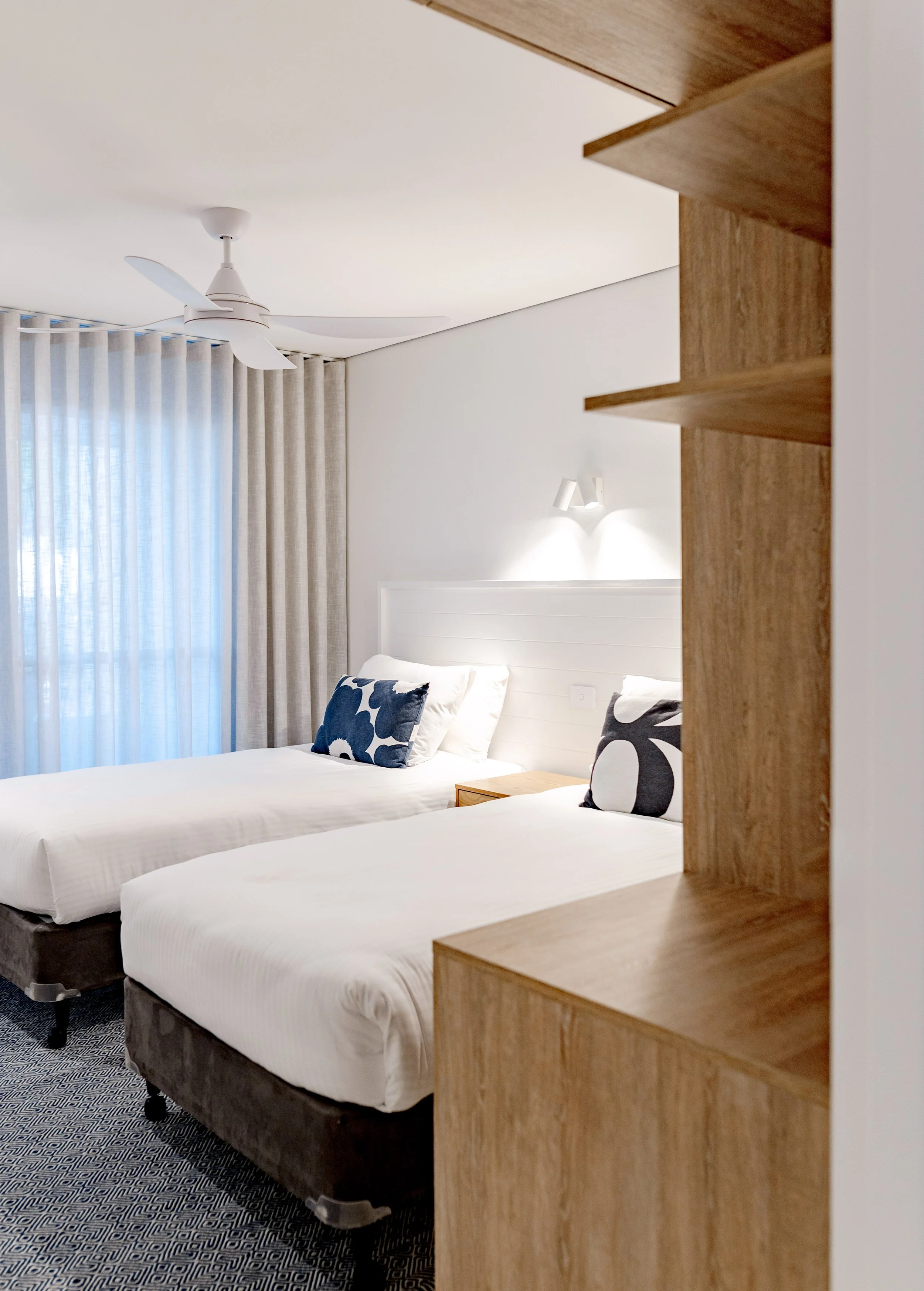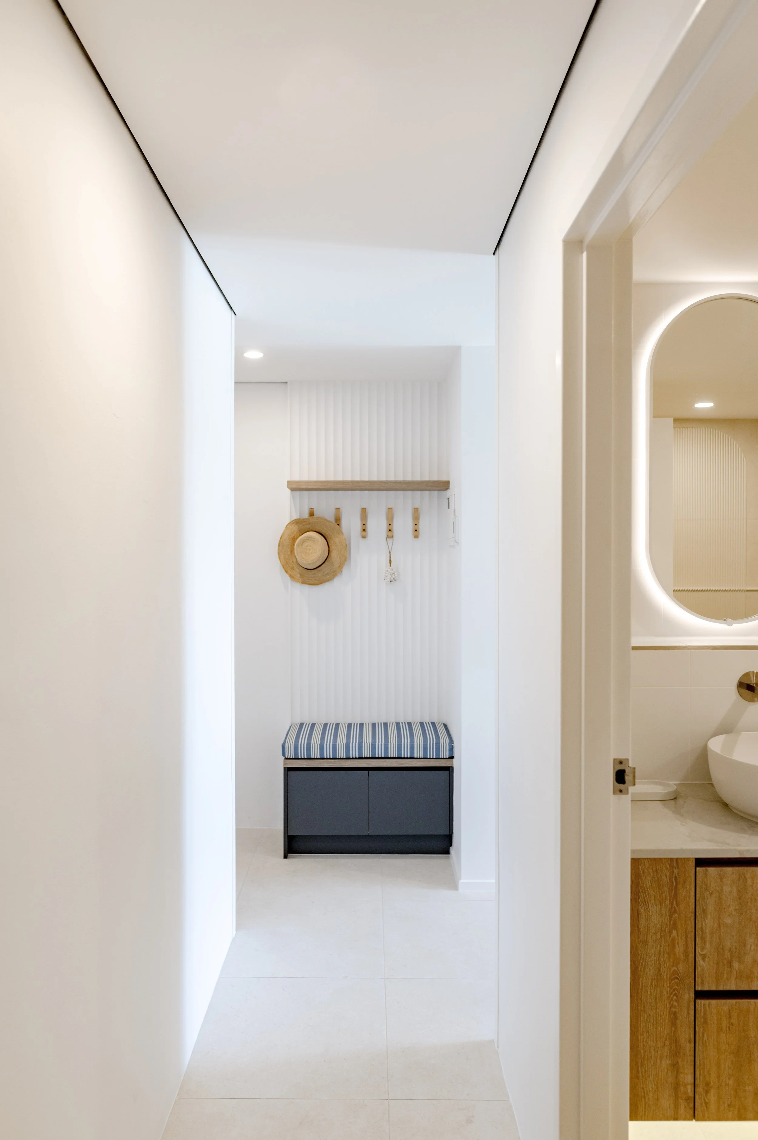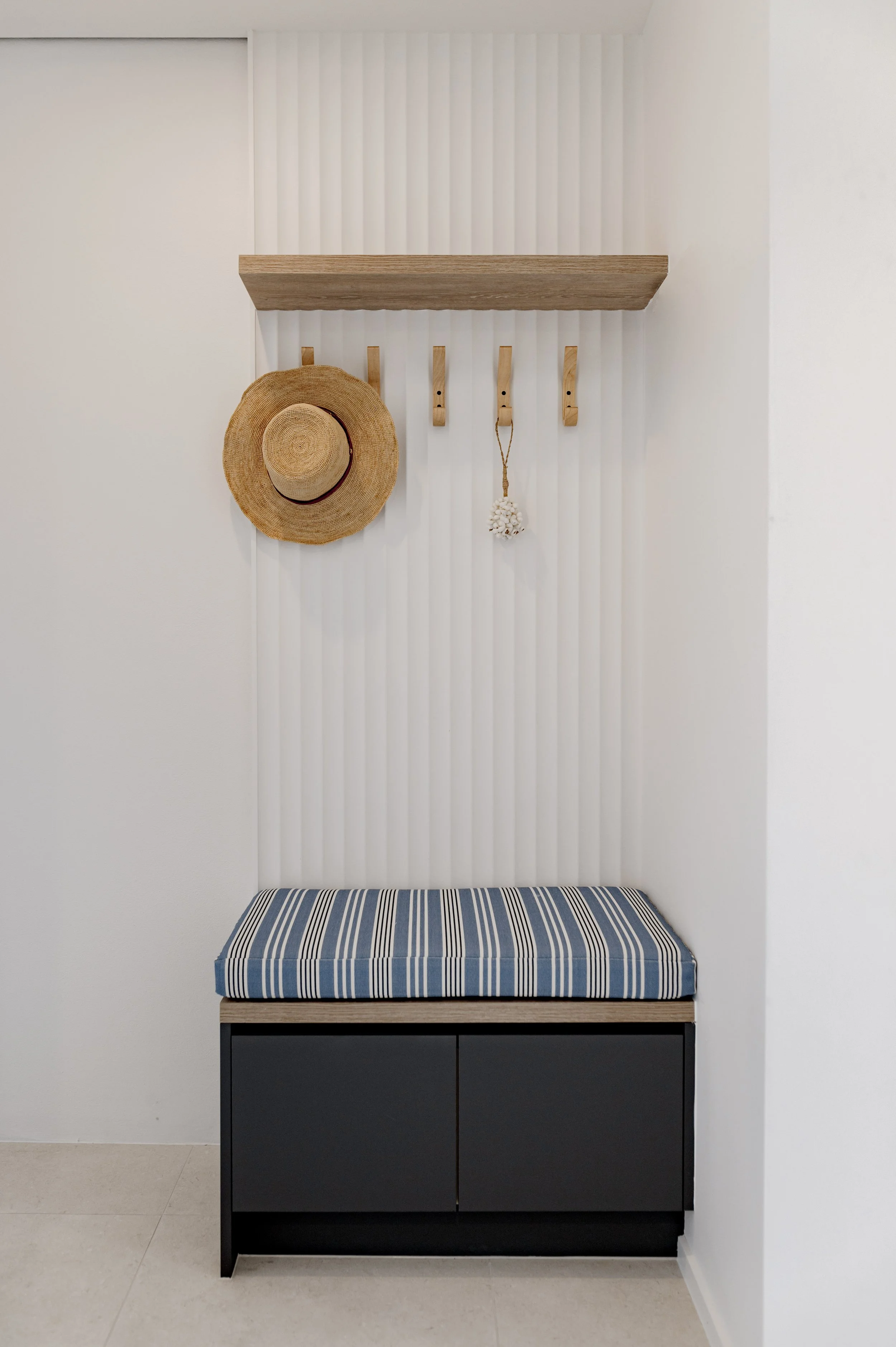 Noosa Holiday House showcases Collins Building Designs ability to transform what was once a small and restricted holiday rental into a space that has a large and open feel. In this design we removed the dining table and added an island bench that can double as a dining table to extend the kitchen. The TV unit was replaced with a booth seat that allows for lockable storage and can be used as a temporary bed. Finally, we added an entrance bench/ hooks and shelf that allows for a discrete location to store shoes and quick access to hats/ coats and towels. We were thrilled with this projects transformation and how our trades were able to finish this project to a high standard.