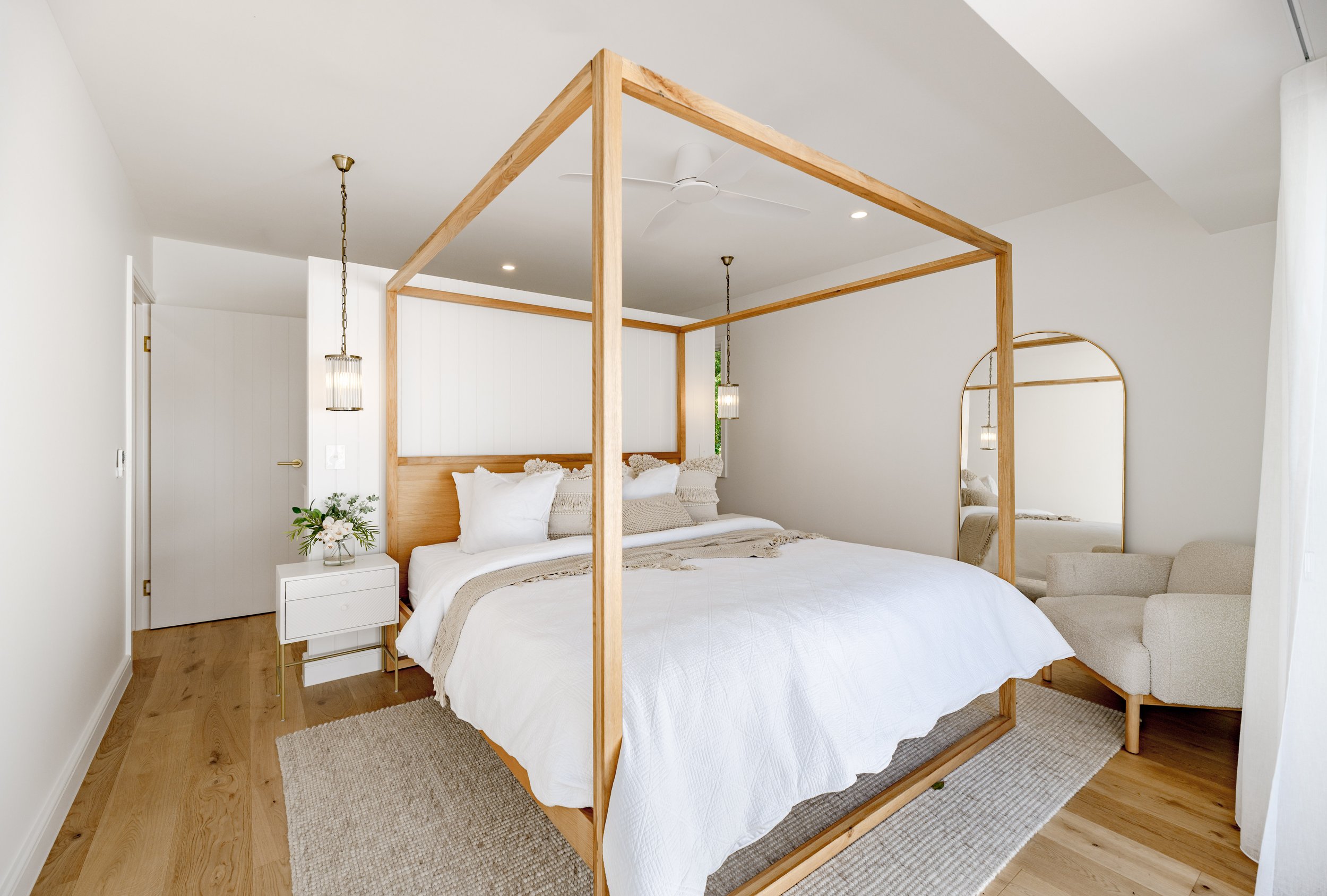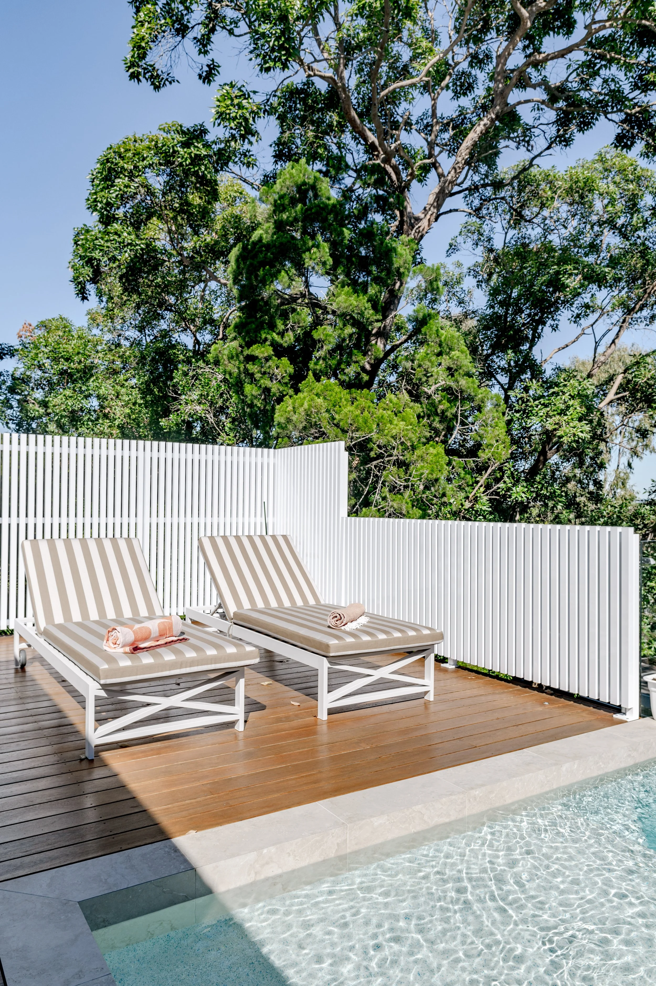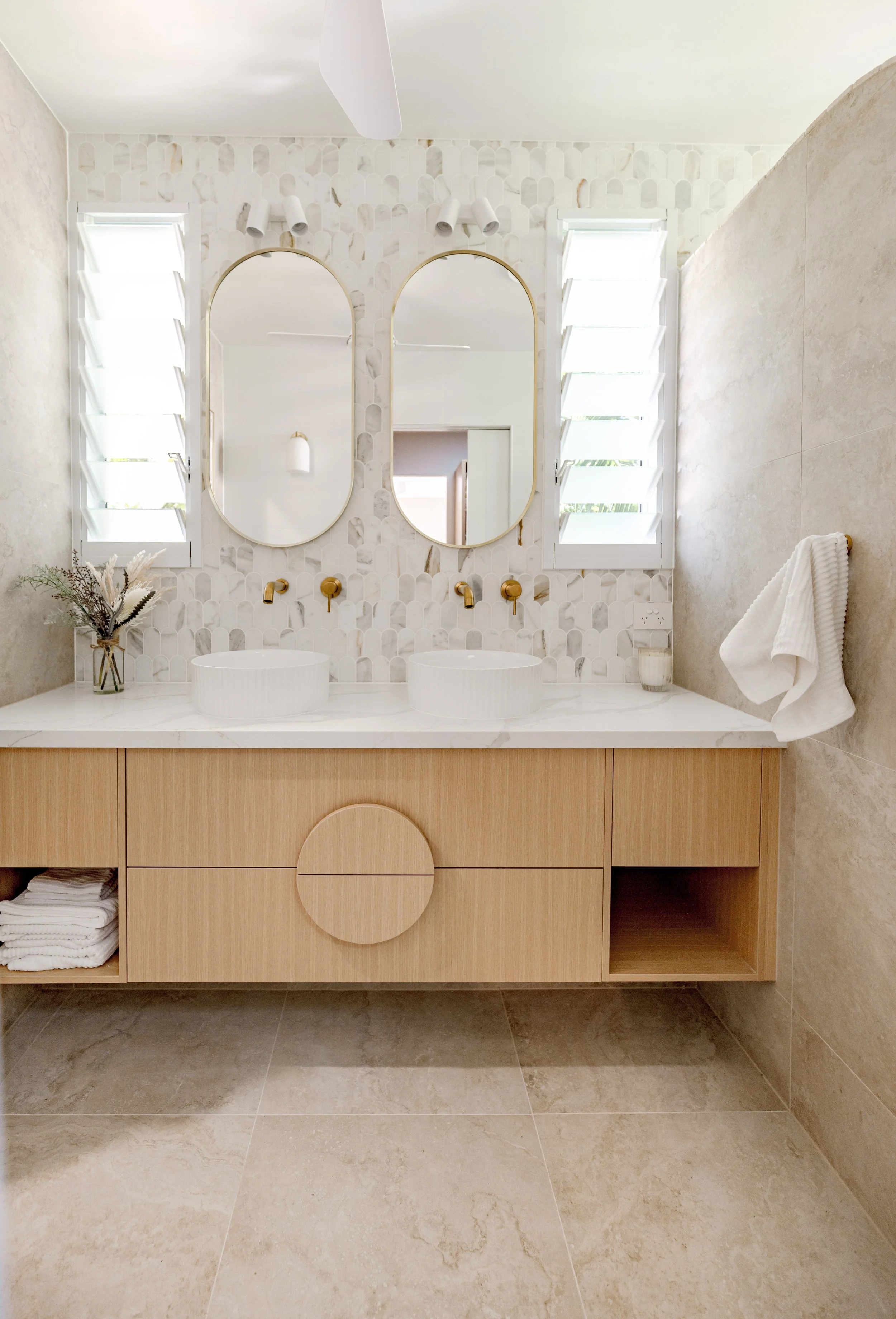 Our Tropical Retreat project is a great showcase of our clients modern and playful brief. This project incorporated many custom features such as a curved gold kitchen range hood, a pool lounge island and an oversize entry door. We really tried to keep the spaces open and light with as much focus on the external environment as possible. Our client was thrilled with this renovations outcome and is a great showcase of our renovation capabilities.
